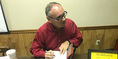 Signing copies of the full-length edition and trilogy editions of "Plowed Fields" for the Carrie Dorsey Perry Memorial Library in Jim's hometown of Nashville, Georgia.